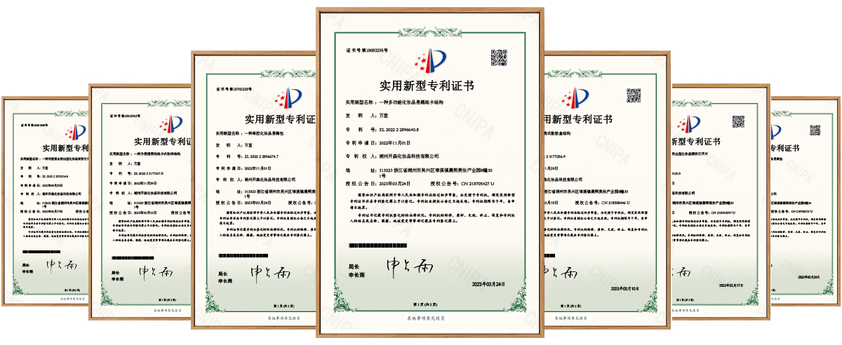 經(jīng)過(guò)多年的研發(fā)創(chuàng)新,湖州開(kāi)森現(xiàn)擁有【一種便攜式散粉盒結(jié)構(gòu)】、【一種多功能化妝品易揭紙卡結(jié)構(gòu)】、【一種方便攜帶的紙卡式粉餅結(jié)構(gòu)】、【一種雙腔混合擠出型化妝品易撕包】、【一種雙腔掰折擠出型化妝品掰折打開(kāi)片】、【一種單腔掰折擠出型化妝品掰折打開(kāi)片證書(shū)】等多種專(zhuān)利,可以根據(jù)客戶(hù)的不同需求,進(jìn)行深度創(chuàng)新,滿(mǎn)足市場(chǎng)和產(chǎn)品日益更新的需求。